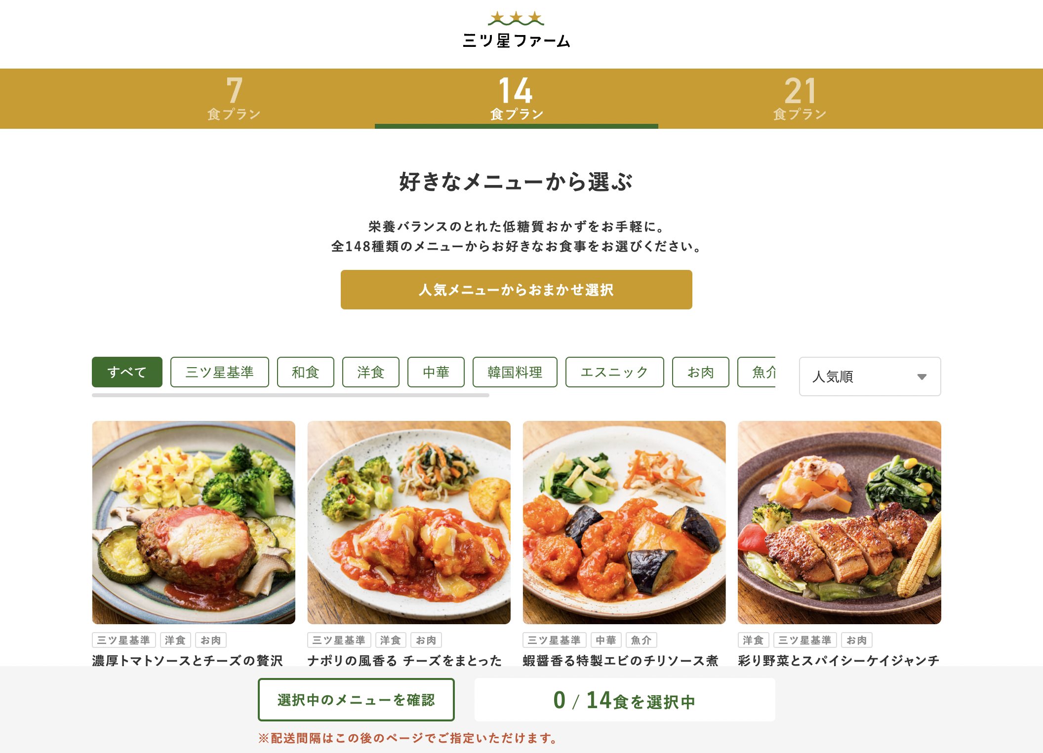 三ツ星ファームは全148種類のメニュー数があります。