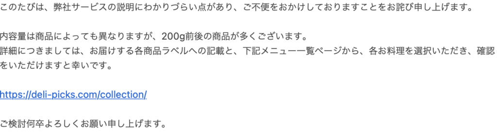 カスタマーサポート回答は200g前後