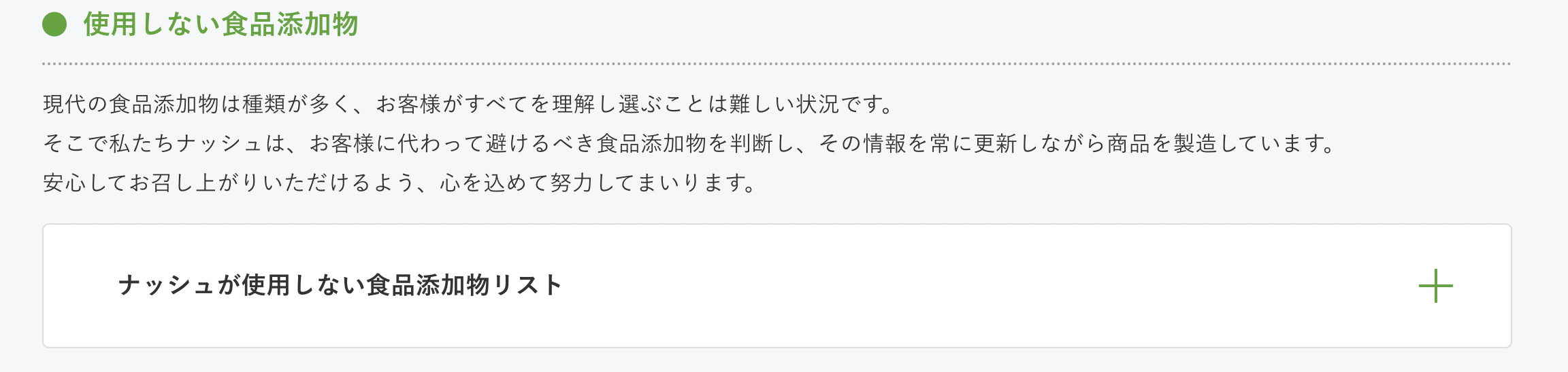 また、添加物についても国の基準の中で管理されており、避けるべき添加物を判断・管理して製造しています。