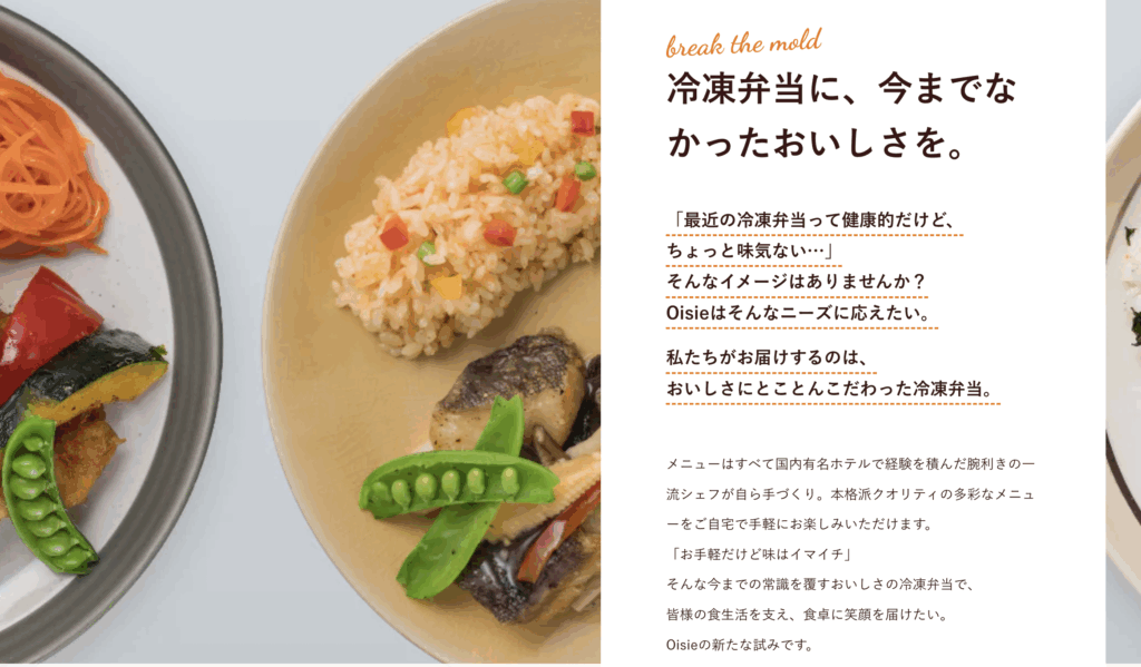オイシエダイニングの公式サイトでも、「冷凍弁当に今までなかったおいしさを。」と